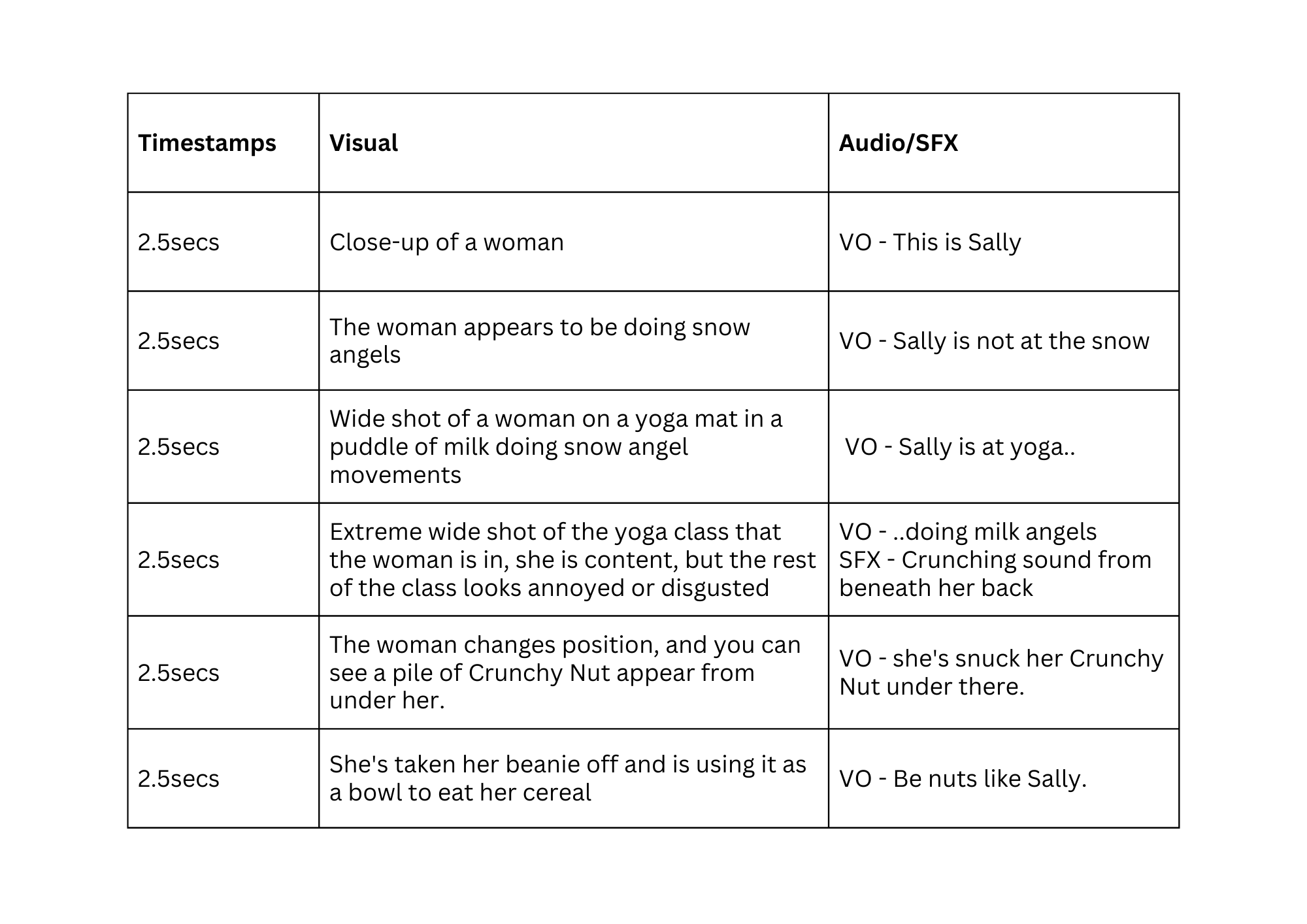The execution: I knew that they had to have a sense of humour or be stupid to align with the brand's archetype. I kept on picturing chaos and this messy merge of milk and Crunchy Nut in this still motion form, capturing the crazy lengths adults will go to for their cereal fix, and that is what I based my creative direction campaign on.